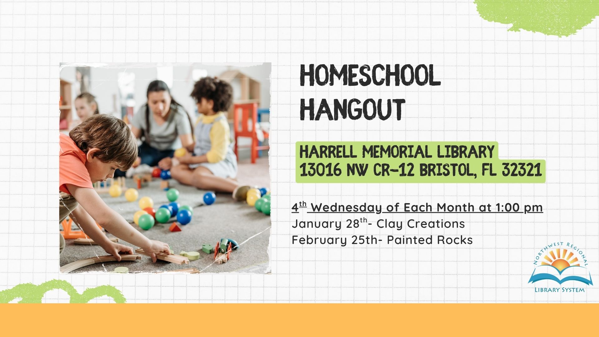Harrell Memorial Public Library 13016 NW CR 12, Bristol, FL, United StatesJoin other homeschool families for a social hour with games, STEM toys and Legos. All ages are welcome. January: Clay Creations Program held at the Harrell Memorial Public Library in […]