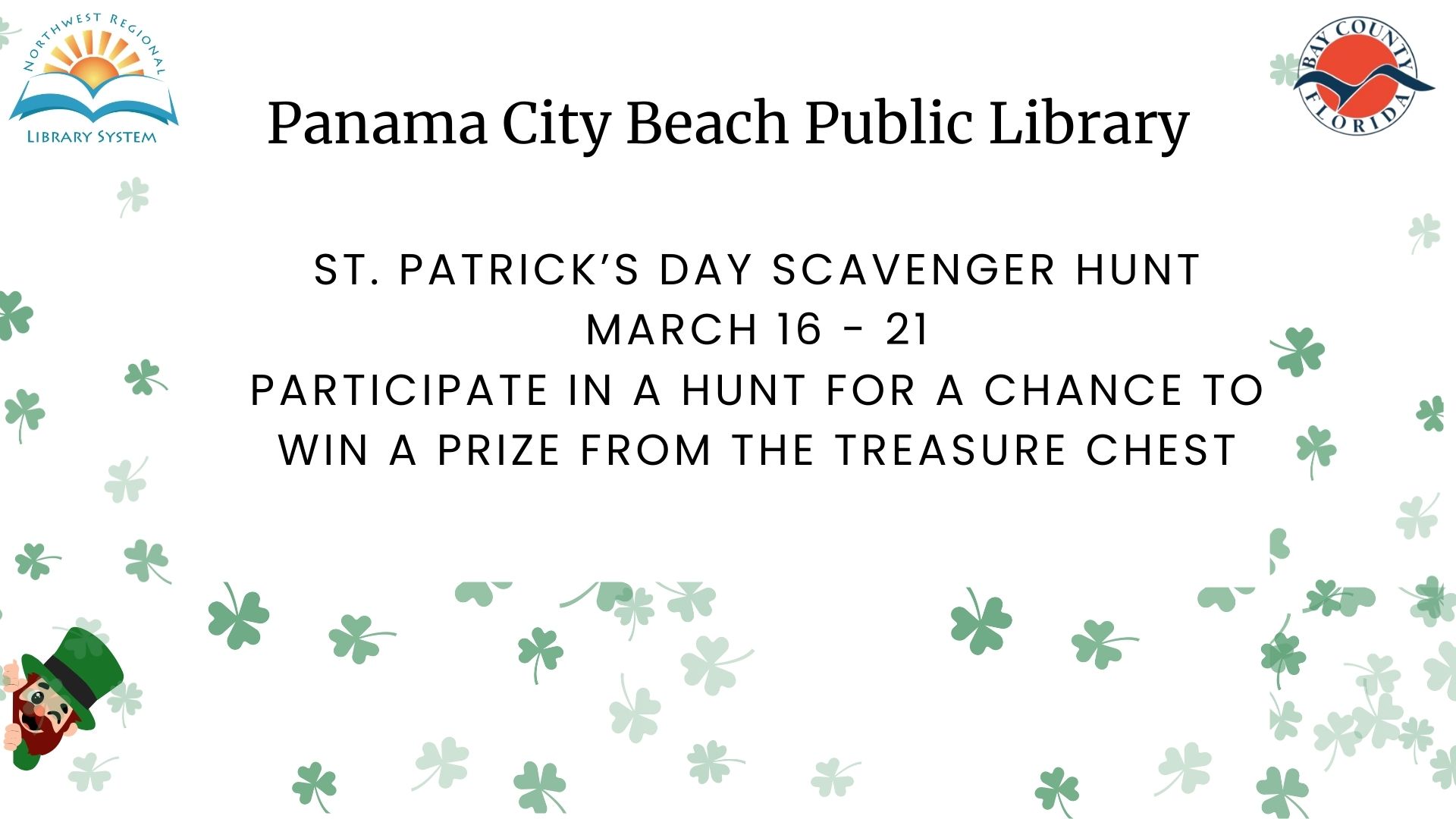 March 16 - 21 Visit the library March 16 - 21 for a fun, St. Patrick's Day themed scavenger hunt! Participants earn a chance to win a prize from the […]