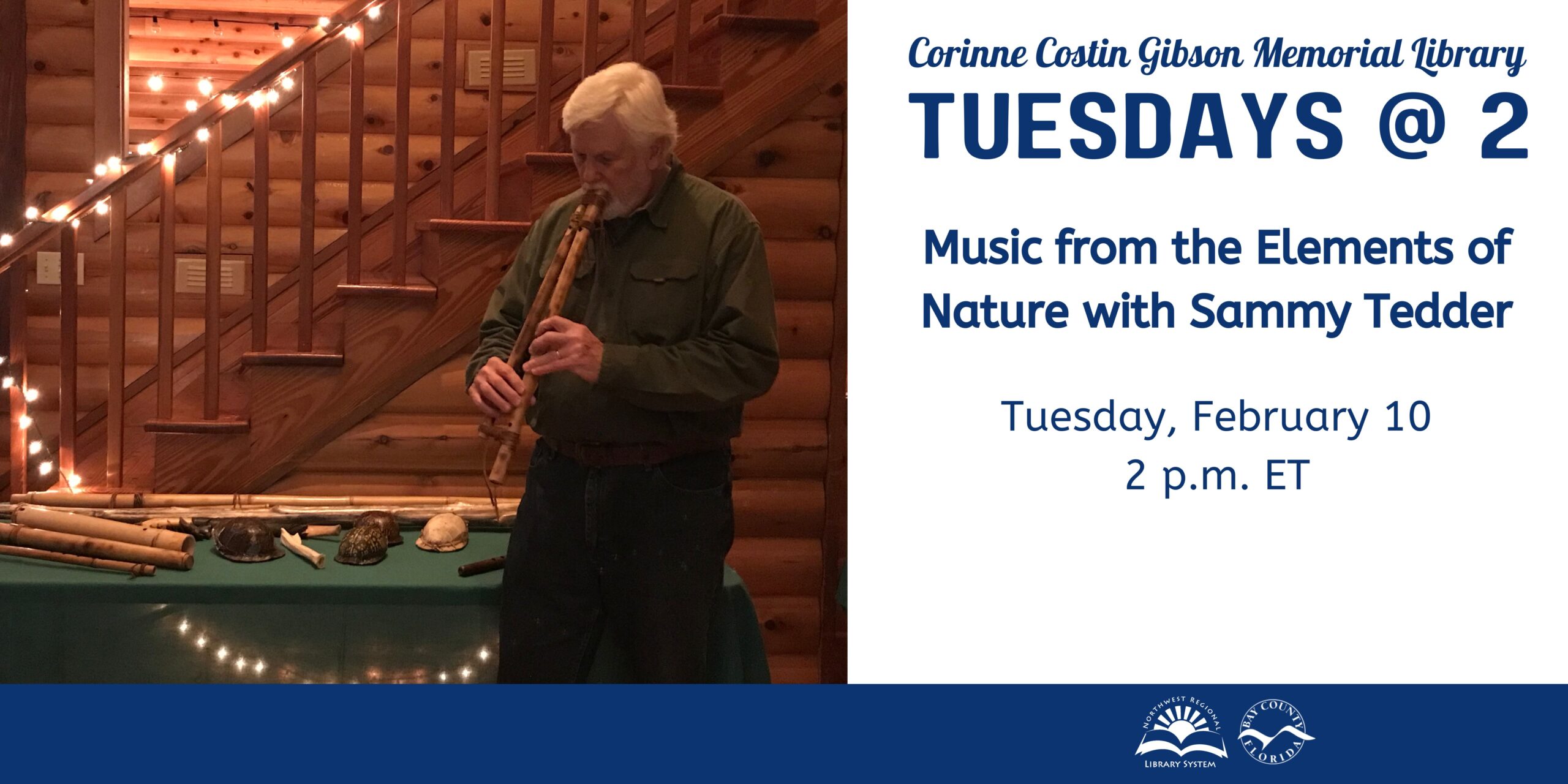 Corinne Costin Gibson Memorial Public Library 110 Library Drive, Port St. Joe, FL, United StatesCultures from all over the world have been making musical instruments from materials found in their local environments: animal skins stretched over hollow logs made drums, cane drilled with holes […]