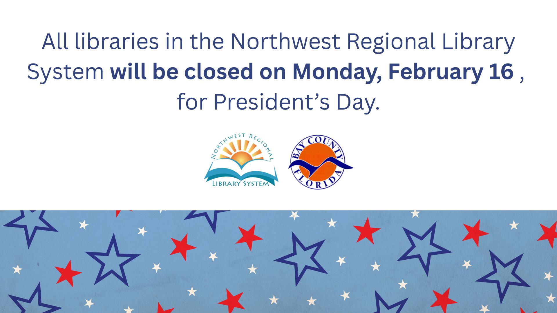 All libraries in the Northwest Regional Library System will be closed on Monday, February 16 for President's Day.