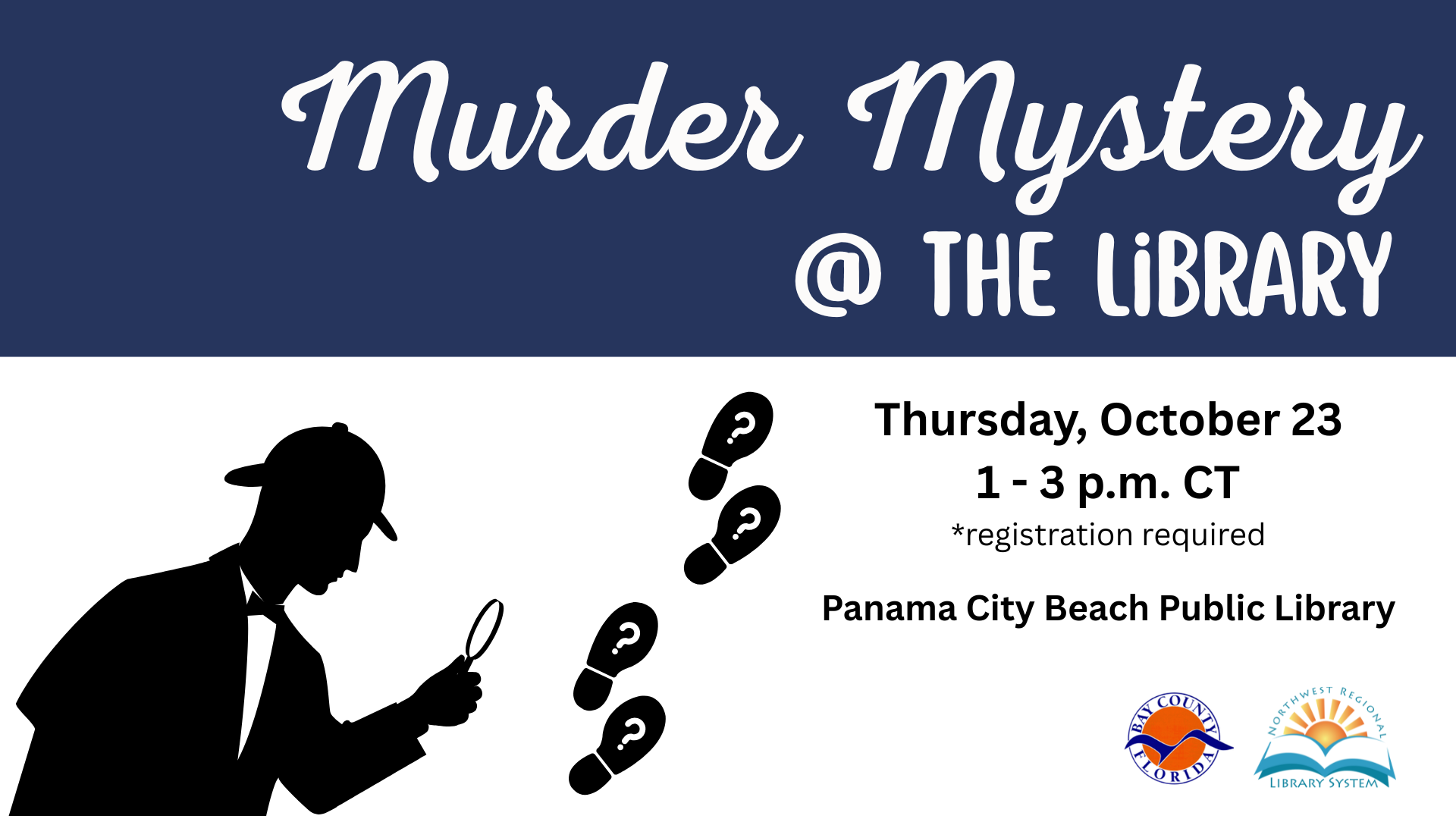 Solve a murder in this collaborative murder mystery game. Each group will be a team of 2-5 players. This program is for adults. *Registration required; Call 850-233-5055 to register.
